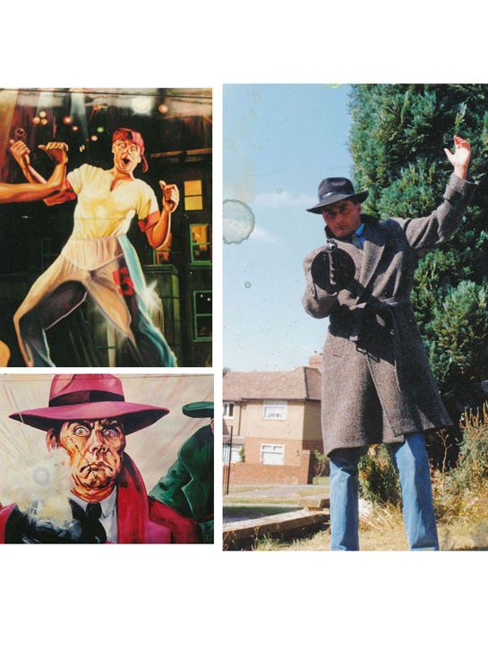 Only Reference available pre internet was books/mag. or DIY with hired props (shown-Thompson machine gun). Used in 'Capones' Restaurant Lakeside plus fairground 'Gangster' rides and a large 'Boogy me' on a large 'Disco' panel.